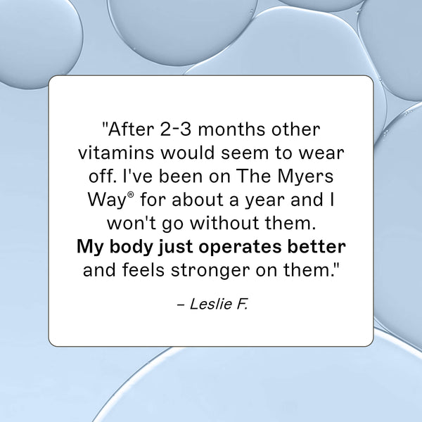 Try The Myers Way® Multivitamin risk-free for ninety days. If you don't experience noticeable improvement in your energy, mental clarity, and overall vitality, contact our customer care team for a full refund—no questions asked. This formula has helped thousands of customers finally get the bioavailable nutrients their bodies have been missing. Your only risk is continuing with multivitamins your body can't absorb when real nutritional support could be one capsule away.†